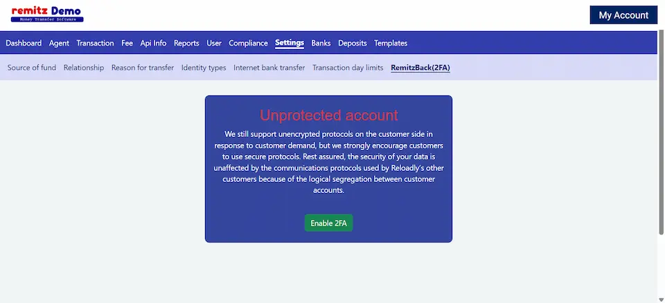 Security is a top priority for your money transfer business. Our platform provides robust and reliable security features, including: