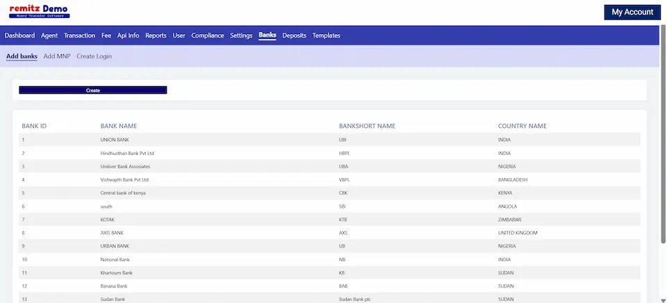 Integrating with local service providers can enhance various payment options, such as utility bill payments and mobile top-ups. Banks for all receive countries can be added here, so that when a bank deposit is selected for any receiving country and that bank will be visible for the customer.