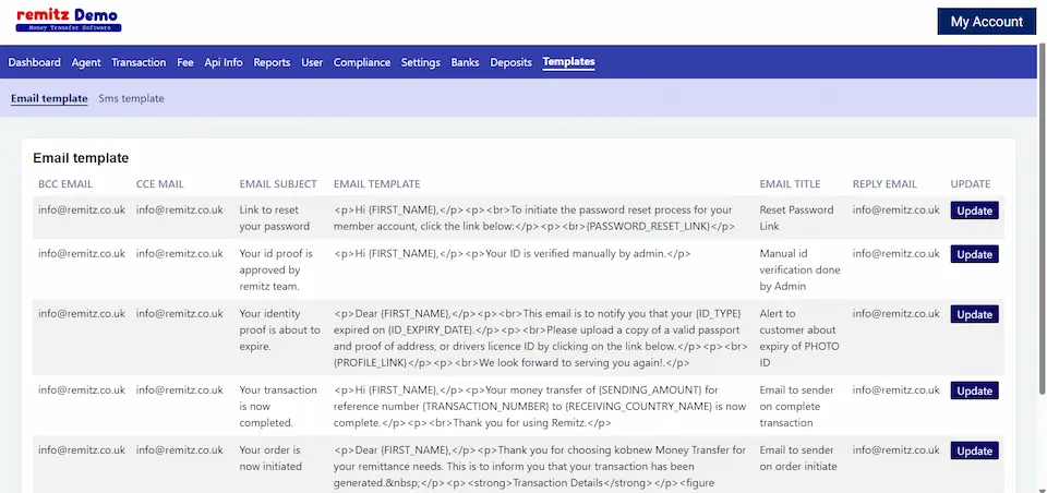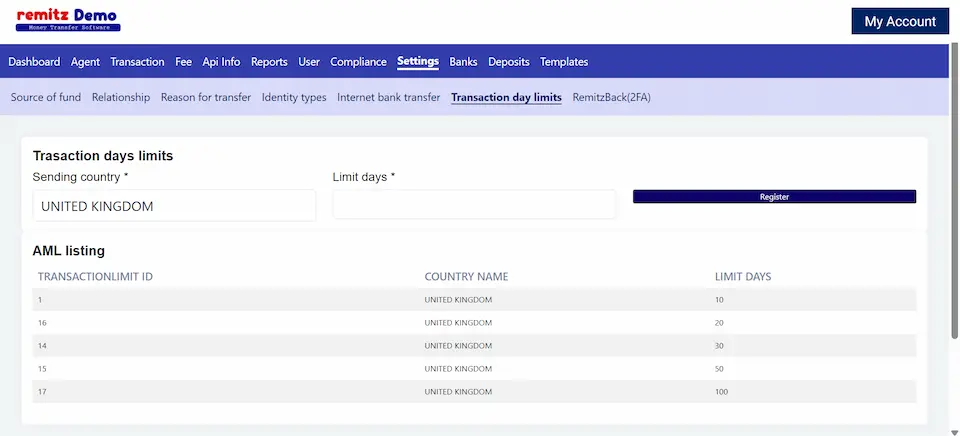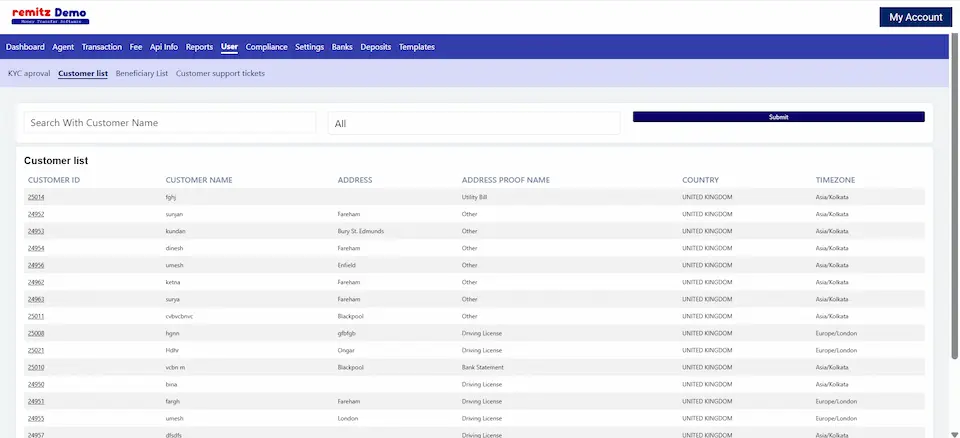The transaction list helps remittance businesses manage and track all transactions efficiently.