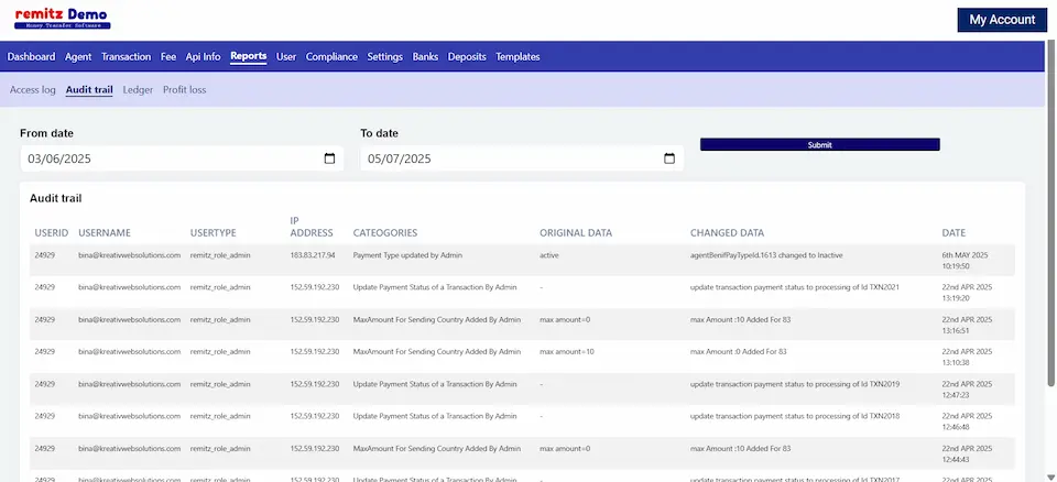 The list of all transactions done by customers and also by agents will be listed here. The transaction list helps remittance businesses manage and track all transactions efficiently.